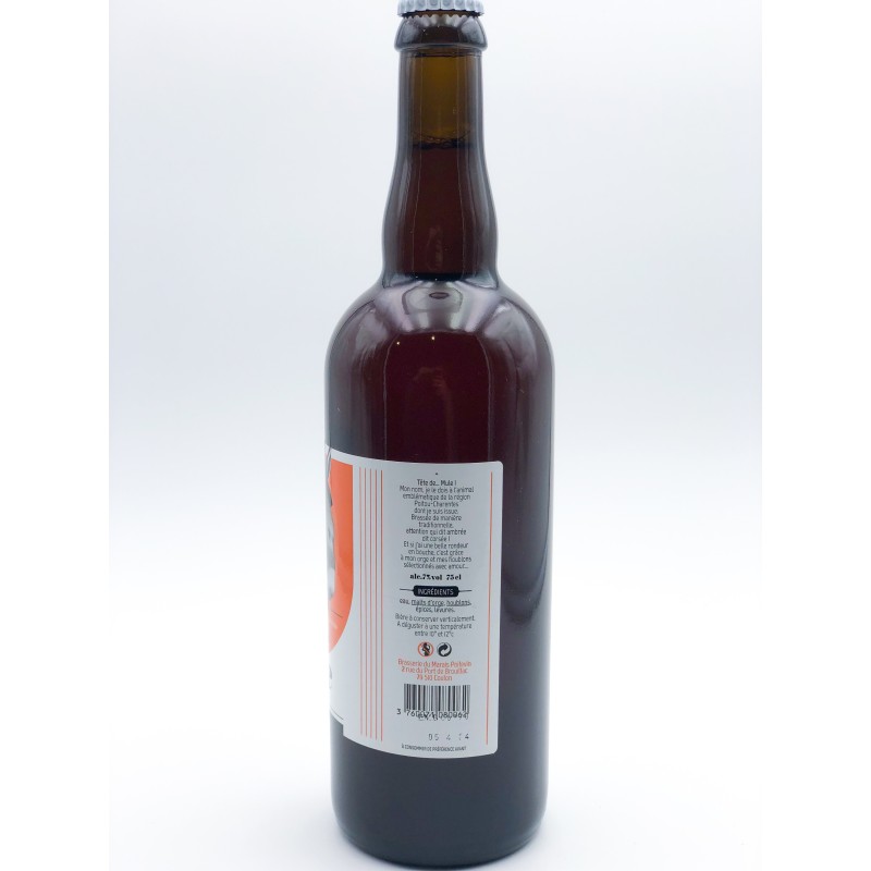 Bouteille de bière de Tête de Mule Ambrée en 75 cl. Produit local fabriqué dans une commune voisine du magasin. Brasserie artisanale. Qui dit ambrée dit corsée, une belle rondeur en bouche.