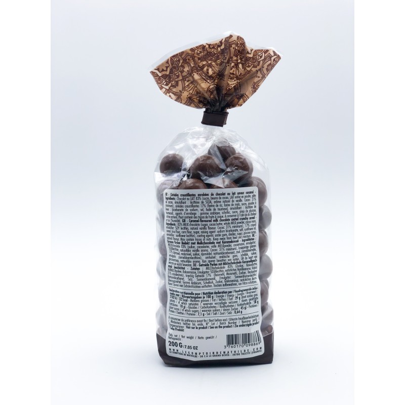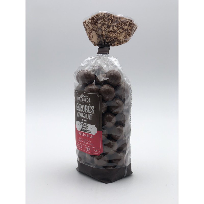 Poche d'enrobés chocolat perles saveur caramel chocolat au lait de 200g. Ces céréales croustillantes caramélisées et enrobées de chocolat au lait proposent un mélange de saveurs éblouissant.