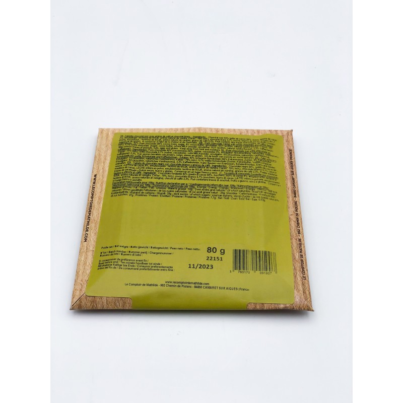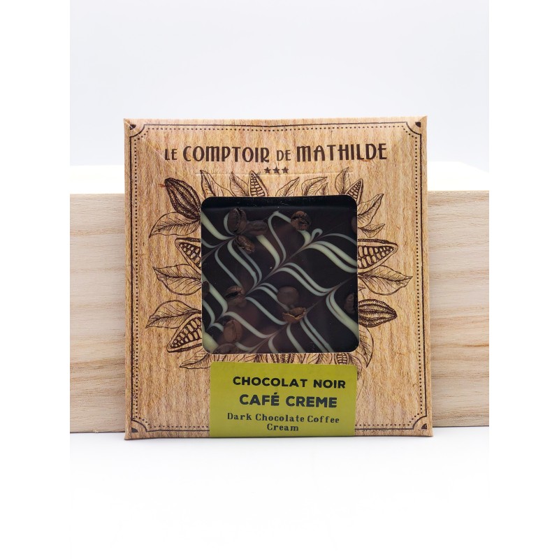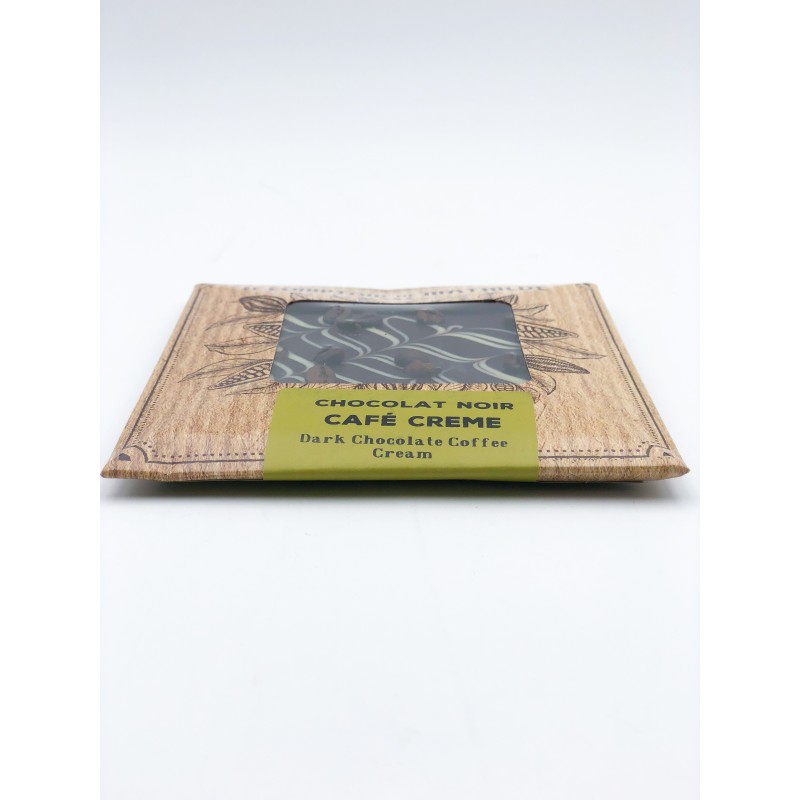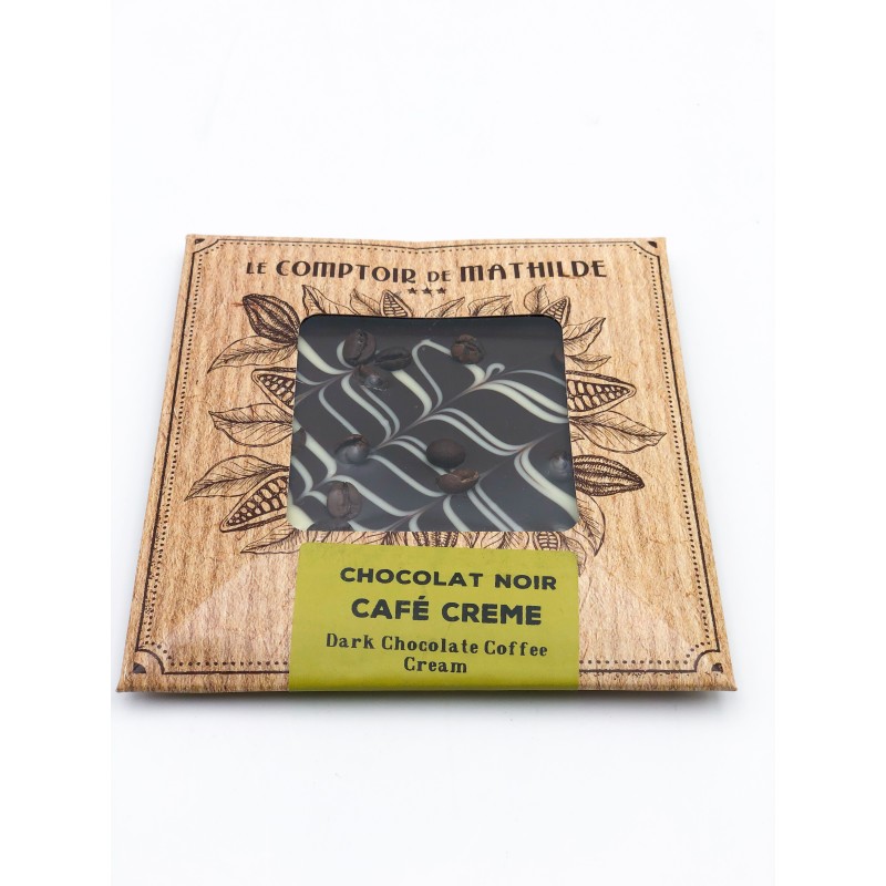 chocolat noir (pâte de cacao, sucre, beurre de cacao, émulsifiant, arôme naturel de vanille, cacao), chocolat blanc (sucre, beurre de cacao, poudre de lait entier, émulsifiant, arôme naturel de vanille), grains de café. Peut contenir des traces de lait, soja, d'arachides, de fruits à coque, d'œuf et de gluten.