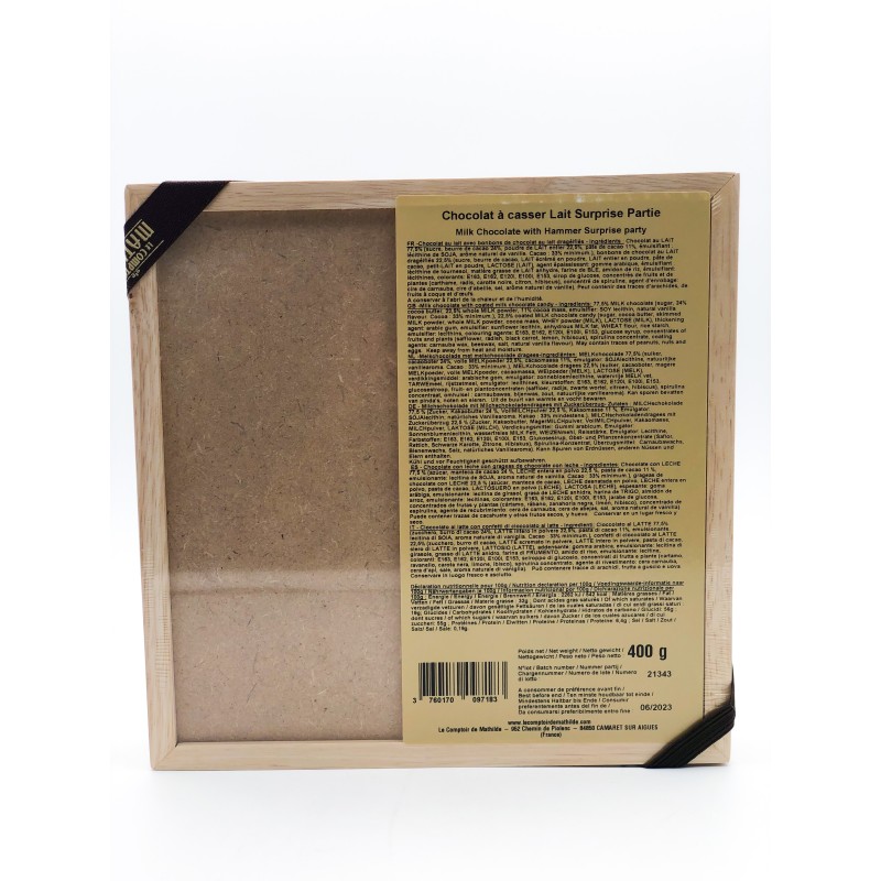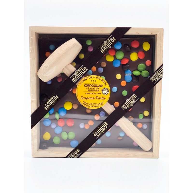 Plaque de chocolat au lait à casser surprise partie de 400g. Pour faire plaisir à vos enfants ou à vous-même, rien de mieux, un chocolat décoré de bonbons chocolat au lait dragéifiés.