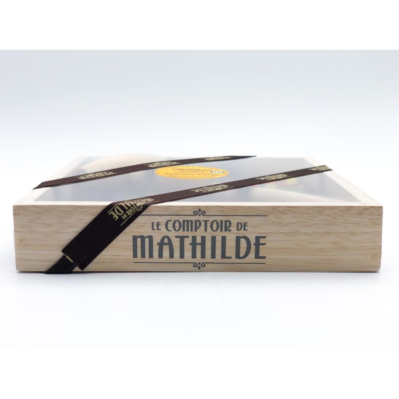 chocolat au lait (sucre, beurre de cacao, poudre de lait entier pâte de cacao, émulsifiant : lécithine de soja, arôme naturel de vanille. cacao), bonbons de chocolat au lait dragéifiés (sucre, beurre de cacao, lait écrémé en poudre, lait entier en poudre, pâte de cacao, petit-lait en poudre, lactose, agent épaississant : gomme arabique, émulsifiant : lécithine de tournesol, matière grasse de lait anhydre, farine de blé, amidon de riz, émulsifiant : lécithines, colorants: E163, E162, E120i, E100i, E153, sirop de glucose, concentrés de fruits et de plantes (carthame, radis, carotte noire, citron, hibiscus), concentré de spiruline, agent d'enrobage : cire de carnauba, cire d'abeille, sel, arôme naturel de vanille). Peut contenir des traces de lait, soja, d'arachides, de fruits à coque et d'œufs.