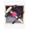 chocolat noir (pâte de cacao sucre, beurre de cacao, émulsifiant : soja, arôme naturel de vanille. cacao), batônnets de chocolat au lait praliné (chocolat au lait (sucre, beurre de cacao, poudre de lait entier pâte de cacao, émulsifiant : soja, arôme naturel de vanille. cacao, pâte de noisette), grué de cacao caramélisé (fèves de cacao, sucre, caramel (sucre, eau)), cacao). Peut contenir des traces de lait, soja, d'arachides, de fruits à coque et d'œufs et de gluten.