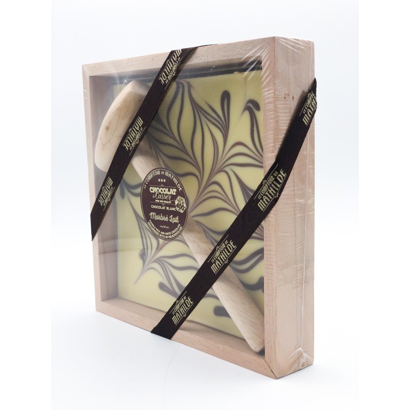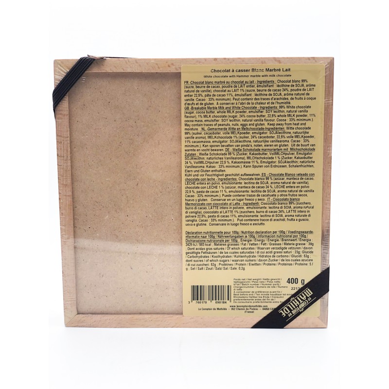 Plaque de 400g de chocolat blanc à casser marbré lait de la société Le Comptoir de Mathilde située en Auvergne-Rhône-Alpes