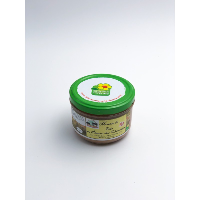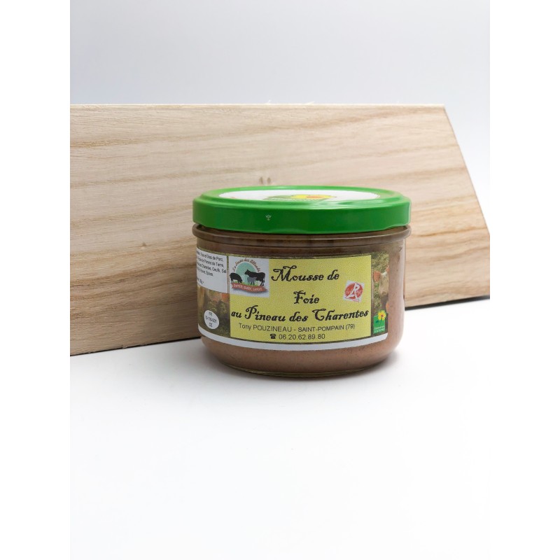 Bocal de mousse de foie au pineau des Charentes de 180g. Produit local fabriqué dans une commune voisine du magasin.