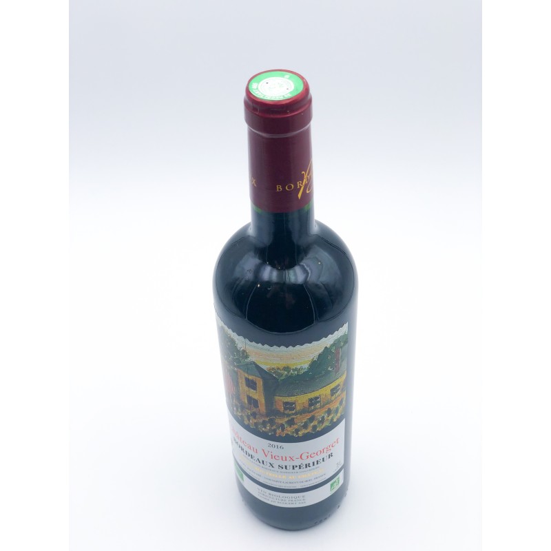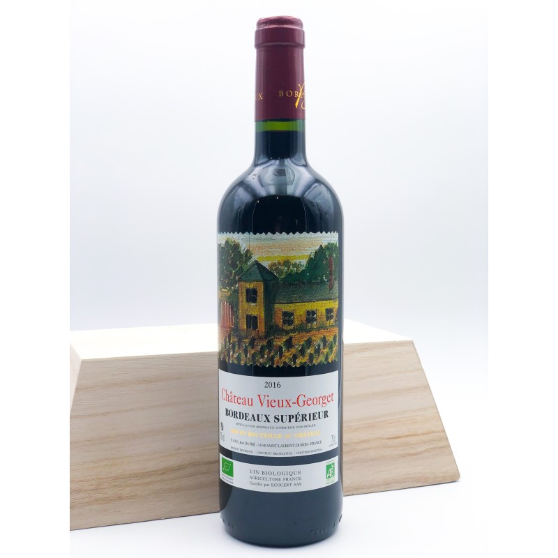 Bouteille de vin Bordeaux Supérieur Château Vieux-Georget de 75 cl. 13 %. Année 2016. Mis en bouteille au château. Contient des sulfites. Un vin rouge avec une robe intense cerise. Au nez, explosent des parfums de fruits rouges notamment de framboise avec de légères notes de sous bois. En bouche, une belle élégance et une belle structure avec des tanins souples. L'abus d'alcool est dangereux pour la santé, à consommer avec modération.
