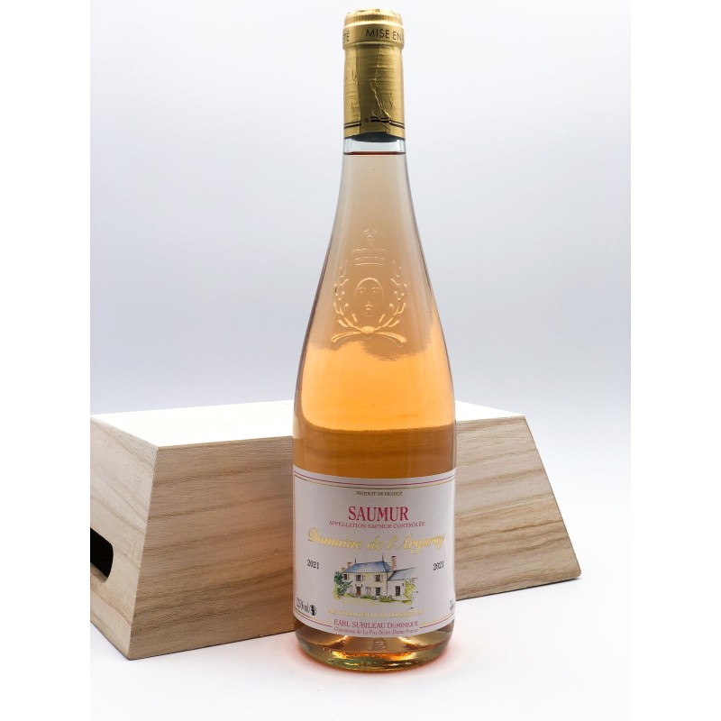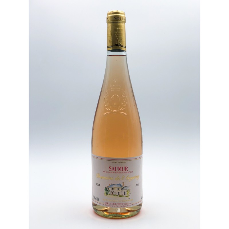 Bouteille de vin de Saumur Domain de de L'Arguray de 75 cl. Année 2021. 12,5 %. Vin rosé au cépage Cabernet Franc. Des arômes de framboises caractérisent ce rosé sec fruité. A servir avec des salades composées, des grillades ou de la charcuterie. Mis en bouteille sur le domaine. Contient des sulfites. L'abus d'alcool est dangereux pour la santé, à consommer avec modération.